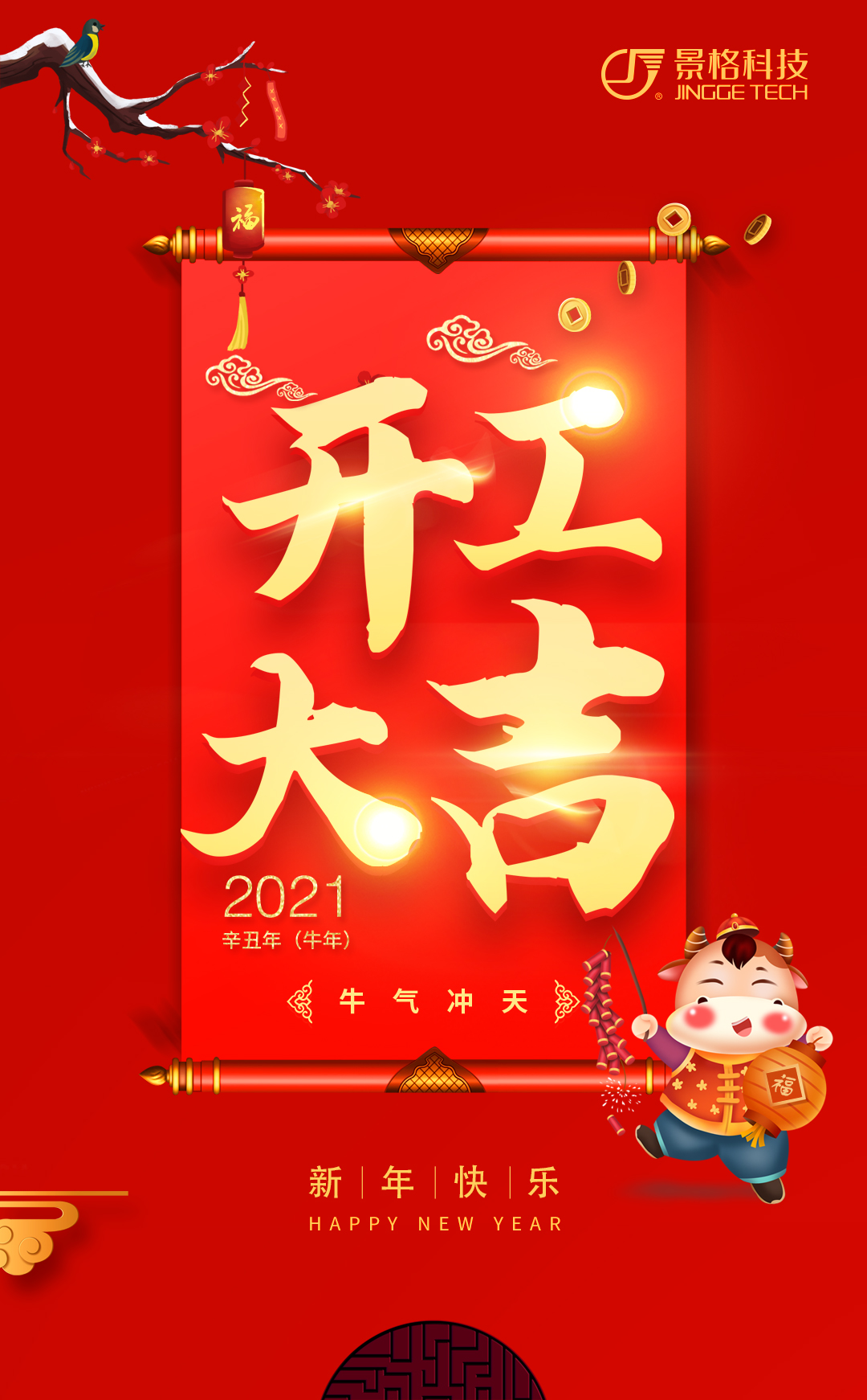 2月19日,景格科技2021辛丑年新春開工儀式在上海總部成功舉行。董事長(zhǎng)鄭玉宇及景格全體伙伴共同參加活動(dòng)。