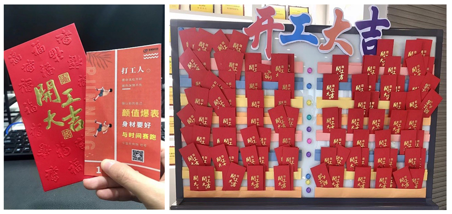 公司向員工送上吉祥如意的開年利是,為節(jié)后準(zhǔn)時(shí)返回工作崗位的員工帶來(lái)了祝福和溫暖。新的一年,蘊(yùn)育新的商機(jī),新的征程譜寫新的輝煌;新的一年,不變的是我們?cè)桨l(fā)飽滿的精神,不變的是我們持之以恒的夢(mèng)想。奮斗的一生,才是幸福的一生!新年蘊(yùn)含著新的希望,但希望總是眷顧不停奮斗的人。新的一年,希望全體景格人能夠迅速進(jìn)入狀態(tài),銘記目標(biāo),采取行動(dòng)!