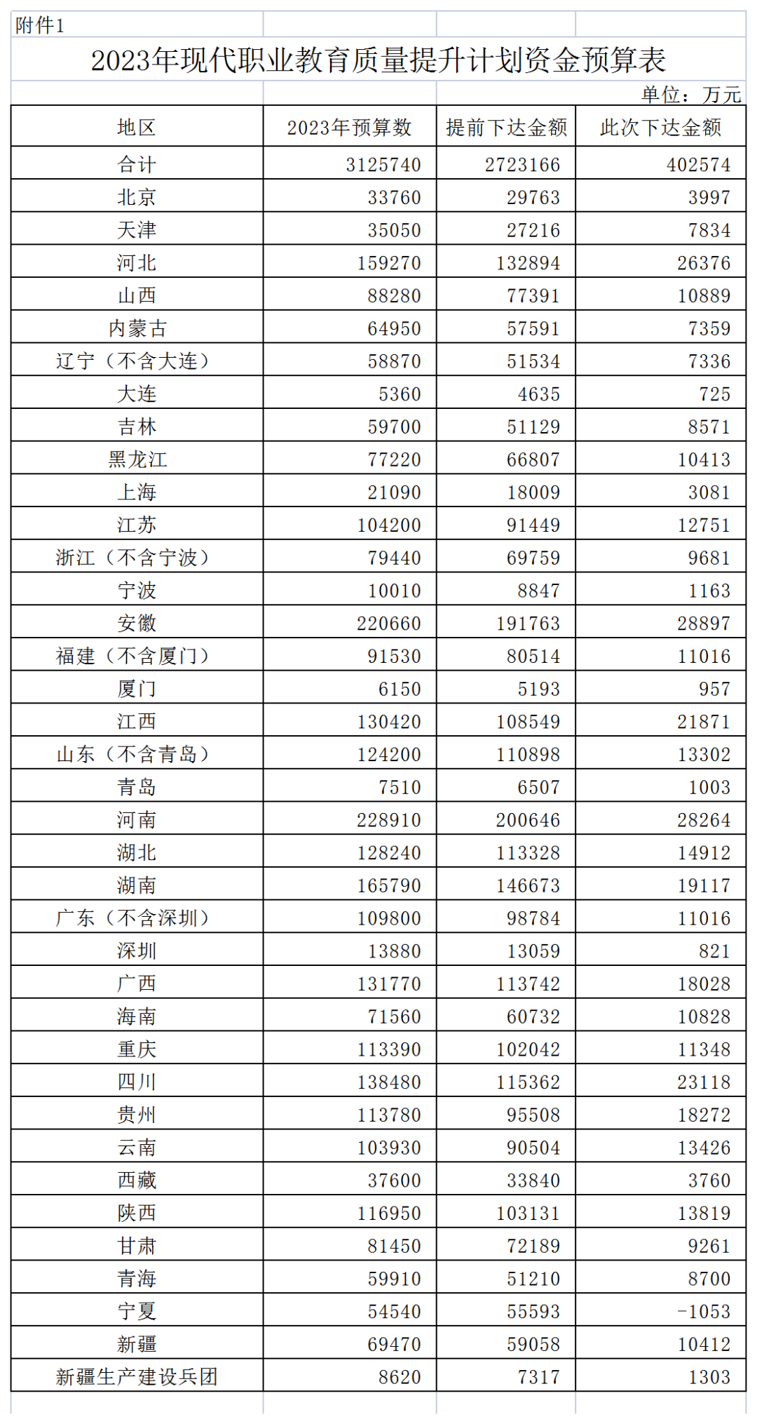 近日從財(cái)政部獲悉,教育部、財(cái)政部印發(fā)《關(guān)于下達(dá)2023年現(xiàn)代職業(yè)教育質(zhì)量提升計(jì)劃資金預(yù)算的通知》,下達(dá)2023年現(xiàn)代職業(yè)教育質(zhì)量提升計(jì)劃資金預(yù)算。此次下達(dá)金額為402574萬(wàn)元,加上提前下達(dá)的2723166萬(wàn)元,共下達(dá)2023年現(xiàn)代職業(yè)教育質(zhì)量提升計(jì)劃資金預(yù)算3125740萬(wàn)元,比上年增加10億元。