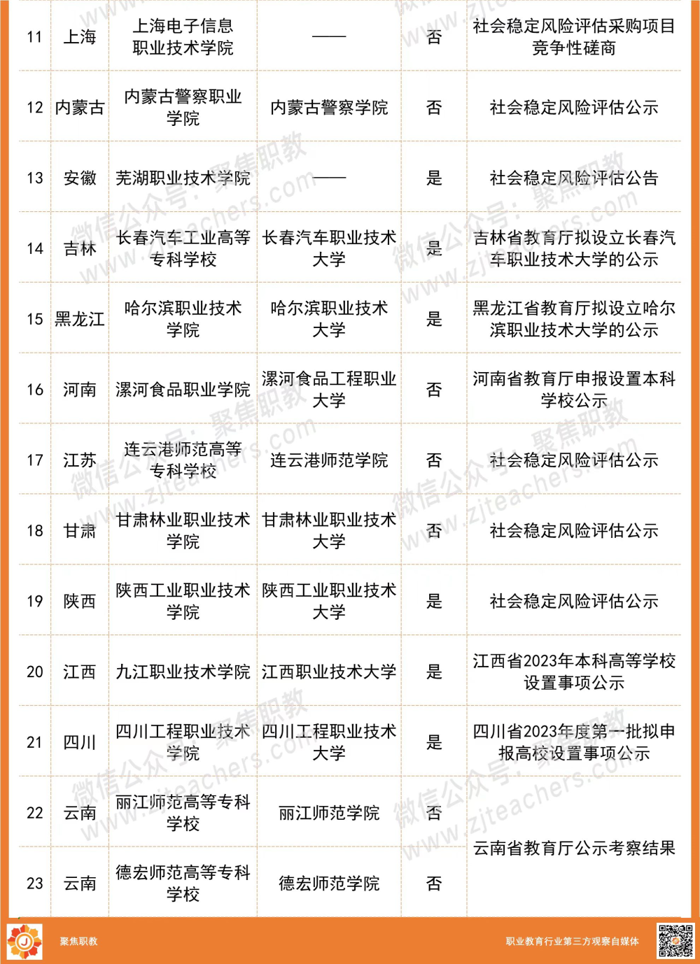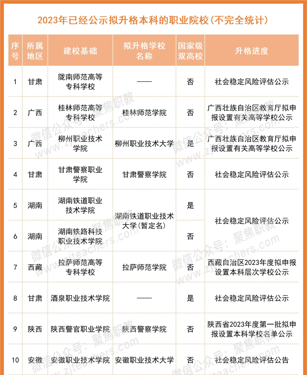 長期以來,聚焦職教持續(xù)關注職業(yè)院校發(fā)展動態(tài),的確如副司?林宇所說,近兩年各地大力支持符合條件的職業(yè)院校升本,多所職業(yè)院校為升本目標全力以赴。尤其今年以來,據(jù)不完全統(tǒng)計,已有超過20所職校擬申報本科或者已公示升本事項社會穩(wěn)定風險評估。