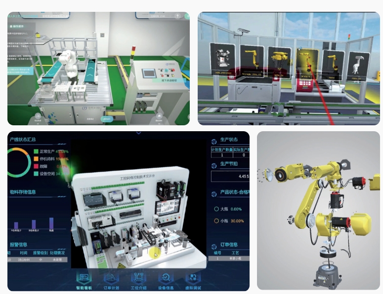 在景格的智能制造教育體系中,依托深厚的技術(shù)積累和對(duì)工業(yè)4.0發(fā)展趨勢(shì)的敏銳把握,已構(gòu)建起覆蓋“硬件+軟件+內(nèi)容+平臺(tái)”的完整產(chǎn)品體系。針對(duì)院校教學(xué)需求,景格研發(fā)了涵蓋工業(yè)機(jī)器人、智能產(chǎn)線、數(shù)字孿生等領(lǐng)域的實(shí)驗(yàn)實(shí)訓(xùn)設(shè)備,通過(guò)高度還原工業(yè)現(xiàn)場(chǎng)的實(shí)訓(xùn)場(chǎng)景,讓學(xué)生在動(dòng)手操作中掌握核心技術(shù);同時(shí),依托虛擬現(xiàn)實(shí)(VR)、增強(qiáng)現(xiàn)實(shí)(AR)等技術(shù)開發(fā)的虛擬實(shí)訓(xùn)軟件,打破了物理空間與設(shè)備成本的限制,學(xué)生可通過(guò)虛擬環(huán)境完成高危、高成本的實(shí)訓(xùn)項(xiàng)目,實(shí)現(xiàn) “安全實(shí)訓(xùn)、高效學(xué)習(xí)”;為幫助院校完善課程體系,還配套開發(fā)了數(shù)字化課程包,將企業(yè)真實(shí)案例、技術(shù)標(biāo)準(zhǔn)轉(zhuǎn)化為標(biāo)準(zhǔn)化教學(xué)內(nèi)容,讓教學(xué)內(nèi)容與產(chǎn)業(yè)需求無(wú)縫銜接。