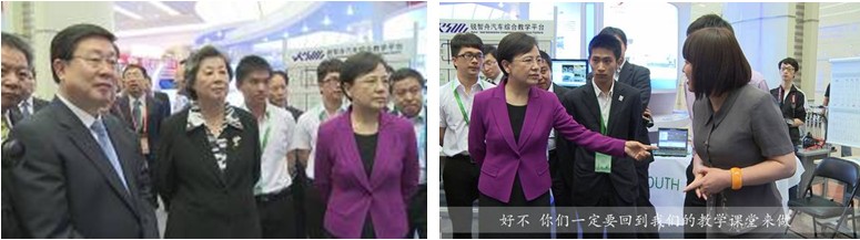 大會期間,中國——聯(lián)合國教科文組織職業(yè)技術(shù)教育展在上海國際會議中心華夏廳精彩亮相。整個展區(qū)由聯(lián)合國展區(qū)、時光隧道、中國職業(yè)院校學(xué)生技能作品展區(qū)(實物展區(qū)、互動展區(qū))、裝備展區(qū)、職業(yè)教育課件展示區(qū)等部分組成。我司帶來最新的汽車教育軟件向前來參觀的領(lǐng)導(dǎo)、專家、同行進(jìn)行展示,教育部副部長魯昕駐足觀看我司展臺,在觀看了我司的產(chǎn)品演示后,對我司能緊跟國家教育政策,積極探索、創(chuàng)新表示肯定,同時也提出了殷切的期望,她說:“我前年和你們提了個建議,我說你們的實訓(xùn)軟件、模擬實訓(xùn)中心和設(shè)備如果和我們教材不一致的話,你那個總歸沒有用,你們還挺快,一年半吧,做出來了,但是今后還得需要你們繼續(xù)來做,好不?你們一定要回到我們的教學(xué)課堂來做?!?br />