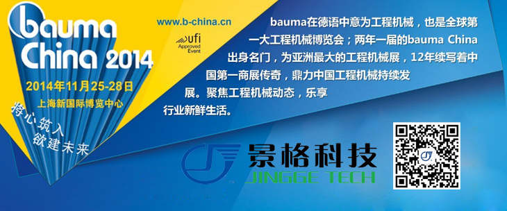 2014年11月25日在,Bauma China 2014——第七屆中國(guó)國(guó)際工程機(jī)械、建材機(jī)械、工程車輛及設(shè)備博覽會(huì)(上海寶馬展)在上海國(guó)際會(huì)展中心揭開(kāi)面紗。兩年一屆的寶馬展,經(jīng)過(guò)精心的籌備”眾星云集”,共吸引國(guó)內(nèi)外40多個(gè)國(guó)家的3000多家優(yōu)秀企業(yè)參與,應(yīng)邀請(qǐng),上海景格科技股份有限公司也將在此次展會(huì)中做相應(yīng)展示。